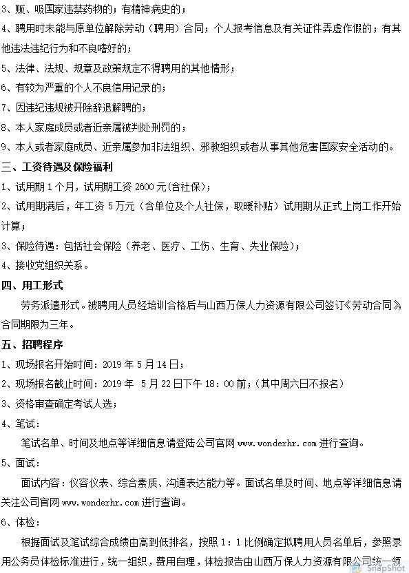 根據(jù)工作需要,經(jīng)古交市政府批準(zhǔn),現(xiàn)面向古交市公開(kāi)招聘輔助工作人員30名。招聘工作由山西萬(wàn)保人力...